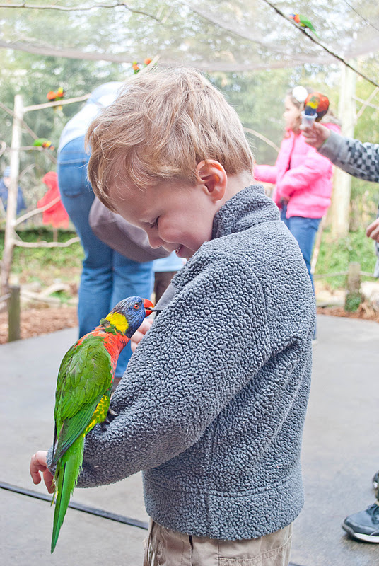 He was right. Sometimes, just SOMETIMES, you have to forget about hygiene to have fun. It's a fact. And the littles really enjoyed being up close and personal with the pretty lorikeets.
